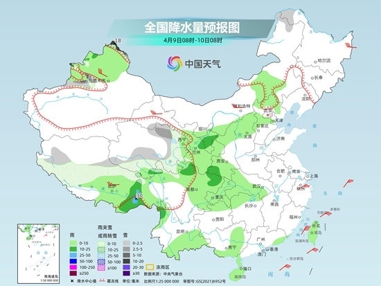 央視網(wǎng)消息:據(jù)中國天氣網(wǎng)消息,今明兩天(4月9日至10日),南方大部處在雨水間歇期,降水稀少,氣溫逐漸回升;華北、東北多地在冷空氣的影響下,將出現(xiàn)弱降水天氣,同時(shí)部分地區(qū)氣溫下滑。此外需要注意的是,青藏高原中東部雨雪持續(xù),部分地區(qū)有小到中雪或雨夾雪。