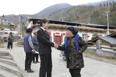 圖①:法院干警剛到彝寨,彝族同胞便聚集過(guò)來(lái)。