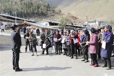 陽(yáng)春三月,萬(wàn)物復(fù)蘇。繁花盛開(kāi),如詩(shī)如畫。四川省石棉縣人民法院美羅女子法庭來(lái)到安順場(chǎng)鎮(zhèn)新場(chǎng)村彝寨,開(kāi)展“雙語(yǔ)”普法活動(dòng)。