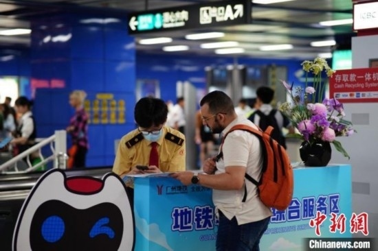 廣交會(huì)期間,廣州地鐵提供更便捷、多元化的出行保障,包括設(shè)置“綜合服務(wù)區(qū)”,提供現(xiàn)場(chǎng)咨詢、外語翻譯、票務(wù)導(dǎo)購(gòu)等多元服務(wù)。廣州地鐵集團(tuán)供圖