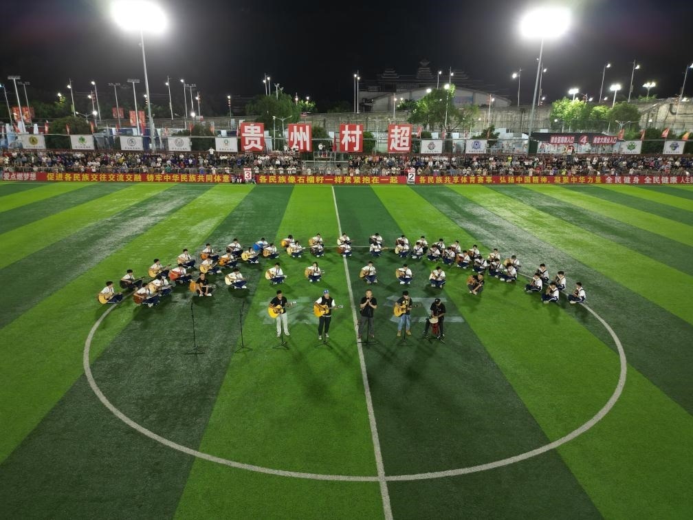 遼寧東港草莓足球隊帶來嗩吶表演、中山大學鳳慶滇紅茶足球隊帶來蘆笙舞、畢節(jié)南山羊肉粉足球隊帶來彝族舞蹈……在“帶著非遺上村超”“來村超約場球”等活動的聚力匯智作用下,榕江攜手各地推動了“村超”流量的共建共享。