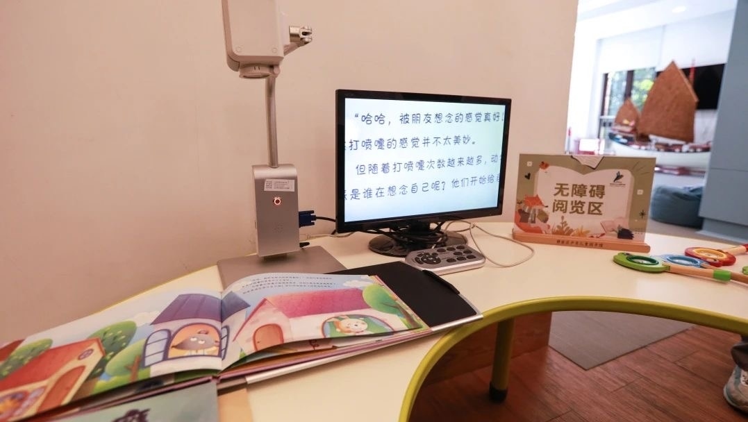 經(jīng)整改,圖書館各在一樓和三樓設(shè)有無障礙閱覽區(qū),增配大字版圖書和手指點讀發(fā)聲書,配置盲人專用電腦助視器、盲文點字顯示器、盲文有聲讀書機和放大鏡。打造有聲閱讀文化體驗陣地“數(shù)智圖書館”,視障讀者只需使用數(shù)智耳機觸碰感應(yīng)相應(yīng)書卡和書籍,就能輕松接觸到千本好書的精華內(nèi)容,方便快捷地享受與普通人同等的閱讀權(quán)益。圖書館還設(shè)有無障礙通道、無障礙衛(wèi)生間、無障礙電梯,為視障、腿部殘疾等特殊人群提供安全便利全方位的出入保障。