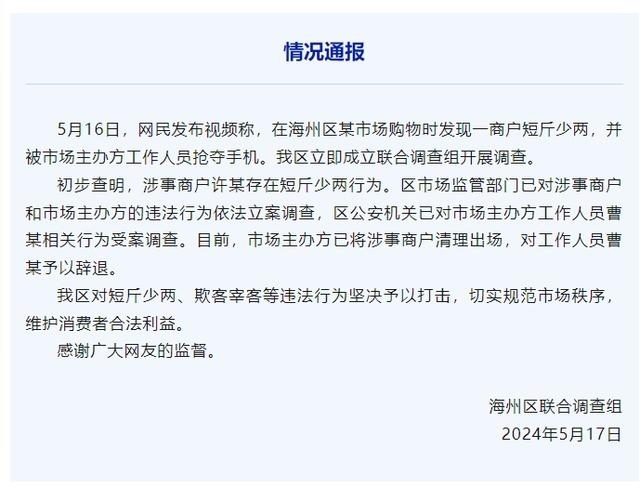 ·連云港通報(bào)海鮮商販“鬼秤”事件:涉事商戶被清理出場。