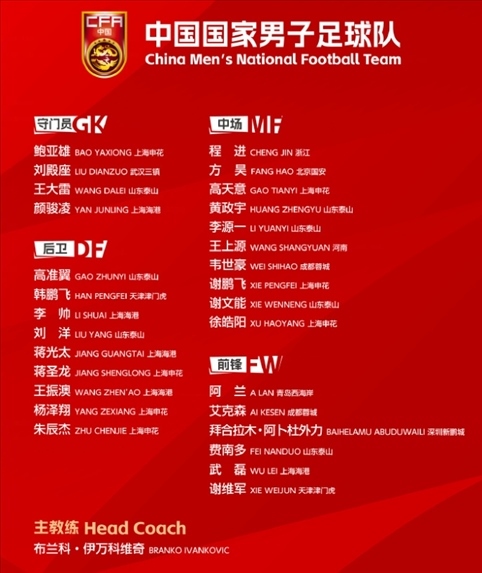 ·國足公布6月世預賽大名單。