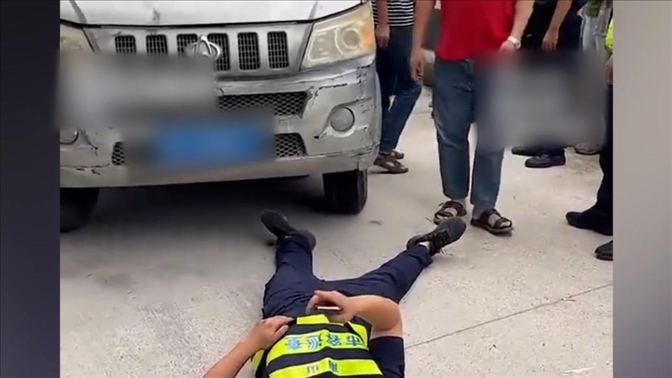 ·深圳通報(bào)“城管被指執(zhí)法倒地碰瓷”:隊(duì)員勸導(dǎo)過(guò)程中被貨車(chē)碰倒。