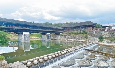 從永錫橋出發(fā),順著清澈的槎溪行進(jìn),約1小時(shí)車程,便來(lái)到另一座風(fēng)雨廊橋東坪鎮(zhèn)馬渡橋。