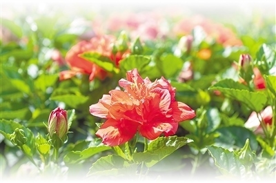 疑若焰生、朝開暮落的朱槿花,在我國古代文學(xué)記載中非常豐富,被賦予了深厚的人文內(nèi)涵?!罢螣熼L暖無霜雪,槿艷繁花滿樹紅。每嘆芳菲四時厭,不知開落有春風(fēng)。”唐代詩人李紳就在詩中贊嘆,“無霜雪”環(huán)境下生長的朱槿花四季常美。
