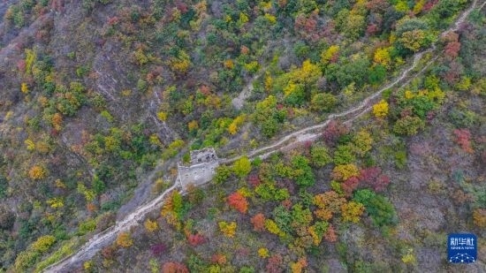 10月18日在河北省遷西縣上營鎮(zhèn)青山關(guān)長城景區(qū)拍攝的秋景(無人機照片)。