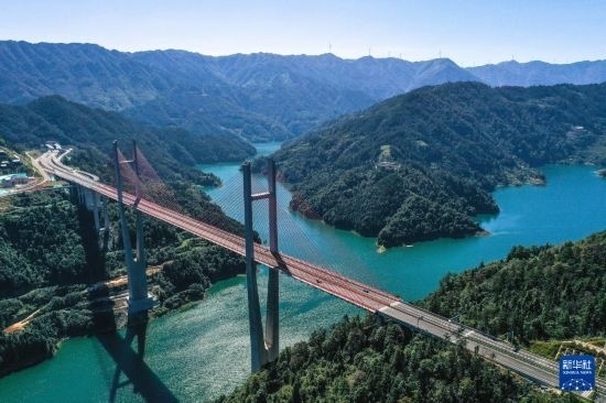 10月25日,車(chē)輛在貴州劍黎高速南孟溪大橋上行駛(無(wú)人機(jī)照片)。