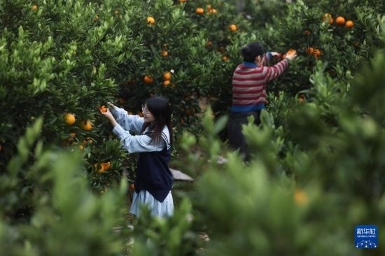 11月10日,在三都鎮(zhèn)柑橘種植基地,游客采摘柑橘。三都鎮(zhèn)柑橘種植面積達(dá)2.8萬畝,總產(chǎn)量4.2萬噸。