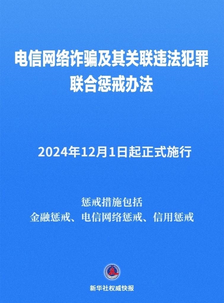 公安部11月26日召開新聞發(fā)布會,介紹公安部會同國家發(fā)展和改革委員會、工業(yè)和信息化部、中國人民銀行聯(lián)合印發(fā)《電信網絡詐騙及其關聯(lián)違法犯罪聯(lián)合懲戒辦法》,2024年12月1日起正式施行。