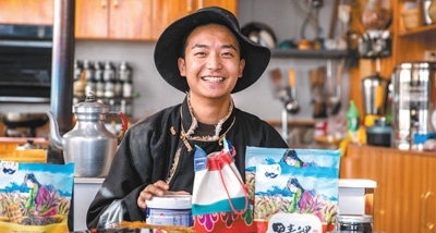 四川省甘孜藏族自治州甲洼鎮(zhèn),當地青年在展示直播售賣的商品。越來越多年輕人扎根家鄉(xiāng),為川藏公路沿線發(fā)展注入活力。