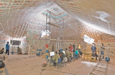 敦煌研究院文物數(shù)字化保護(hù)團(tuán)隊(duì)在進(jìn)行數(shù)字化采集。