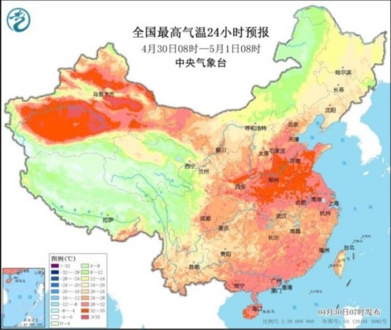 昨日,河北南部等地最高氣溫超過35℃。預(yù)計(jì)今天,華北、黃淮一帶氣溫仍較高,包括鄭州在內(nèi)的部分地區(qū)今天最高氣溫可達(dá)35℃。五一假期臨近,氣象專家提醒,假日前期全國大部地區(qū)降雨偏弱,氣溫偏高,公眾在外出游玩時(shí)注意防暑防曬。假日后期南方地區(qū)雨水增多,外出時(shí)需注意避雨和防御強(qiáng)對流天氣。