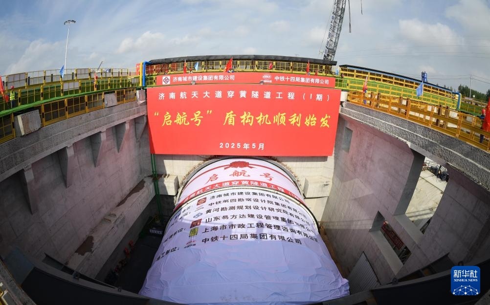 當(dāng)日,由濟(jì)南城市建設(shè)集團(tuán)投資建設(shè)、中鐵十四局承建的濟(jì)南航天大道穿黃隧道工程南線“啟航號”盾構(gòu)機(jī)順利始發(fā),開挖直徑達(dá)15.06米。