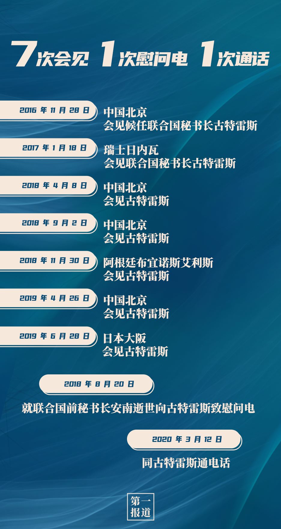 其中,習(xí)主席同聯(lián)合國“掌門人”的交往互動(dòng)最為頻繁,截至目前,習(xí)主席已7次會(huì)見聯(lián)合國秘書長古特雷斯。今年,在全球暴發(fā)新冠疫情的特殊情況下,習(xí)主席還通過“電話外交”同古特雷斯保持溝通交流: