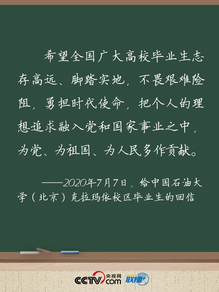 7月7日,習(xí)近平總書記給中國石油大學(xué)(北京)克拉瑪依校區(qū)畢業(yè)生回信,肯定他們到邊疆基層工作的選擇,并對廣大高校畢業(yè)生提出殷切期望。