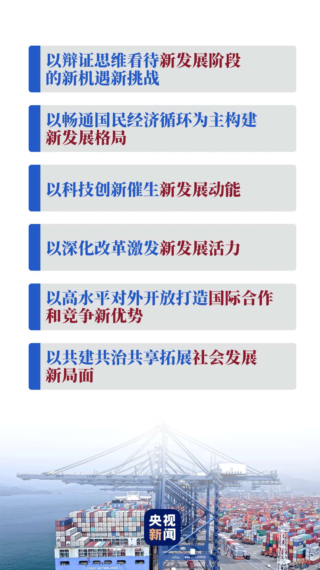 科學(xué)分析形勢(shì),把握發(fā)展大勢(shì)。在經(jīng)濟(jì)社會(huì)領(lǐng)域?qū)<易剷?huì)上,習(xí)近平總書(shū)記深刻指出:“今后一個(gè)時(shí)期,我們將面對(duì)更多逆風(fēng)逆水的外部環(huán)境,必須做好應(yīng)對(duì)一系列新的風(fēng)險(xiǎn)挑戰(zhàn)的準(zhǔn)備”,“準(zhǔn)確識(shí)變、科學(xué)應(yīng)變、主動(dòng)求變,勇于開(kāi)頂風(fēng)船,善于轉(zhuǎn)危為機(jī),努力實(shí)現(xiàn)更高質(zhì)量、更有效率、更加公平、更可持續(xù)、更為安全的發(fā)展”。