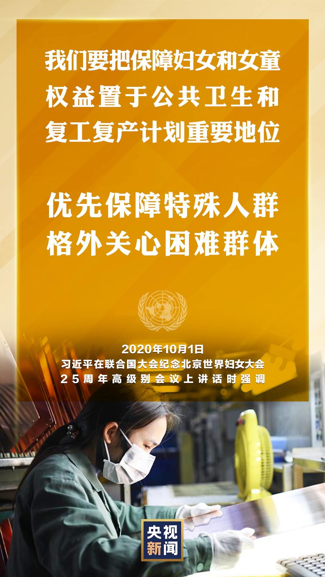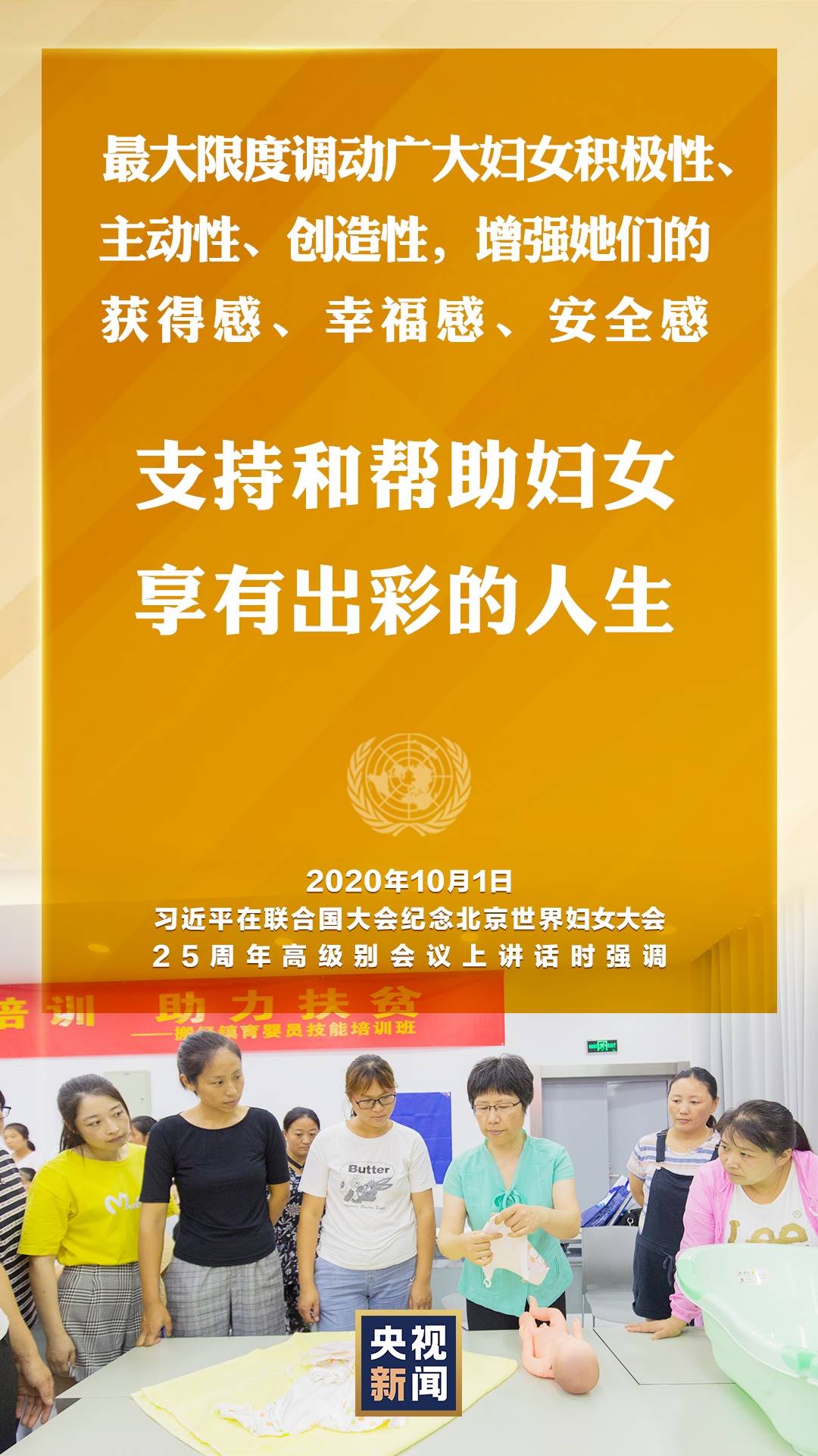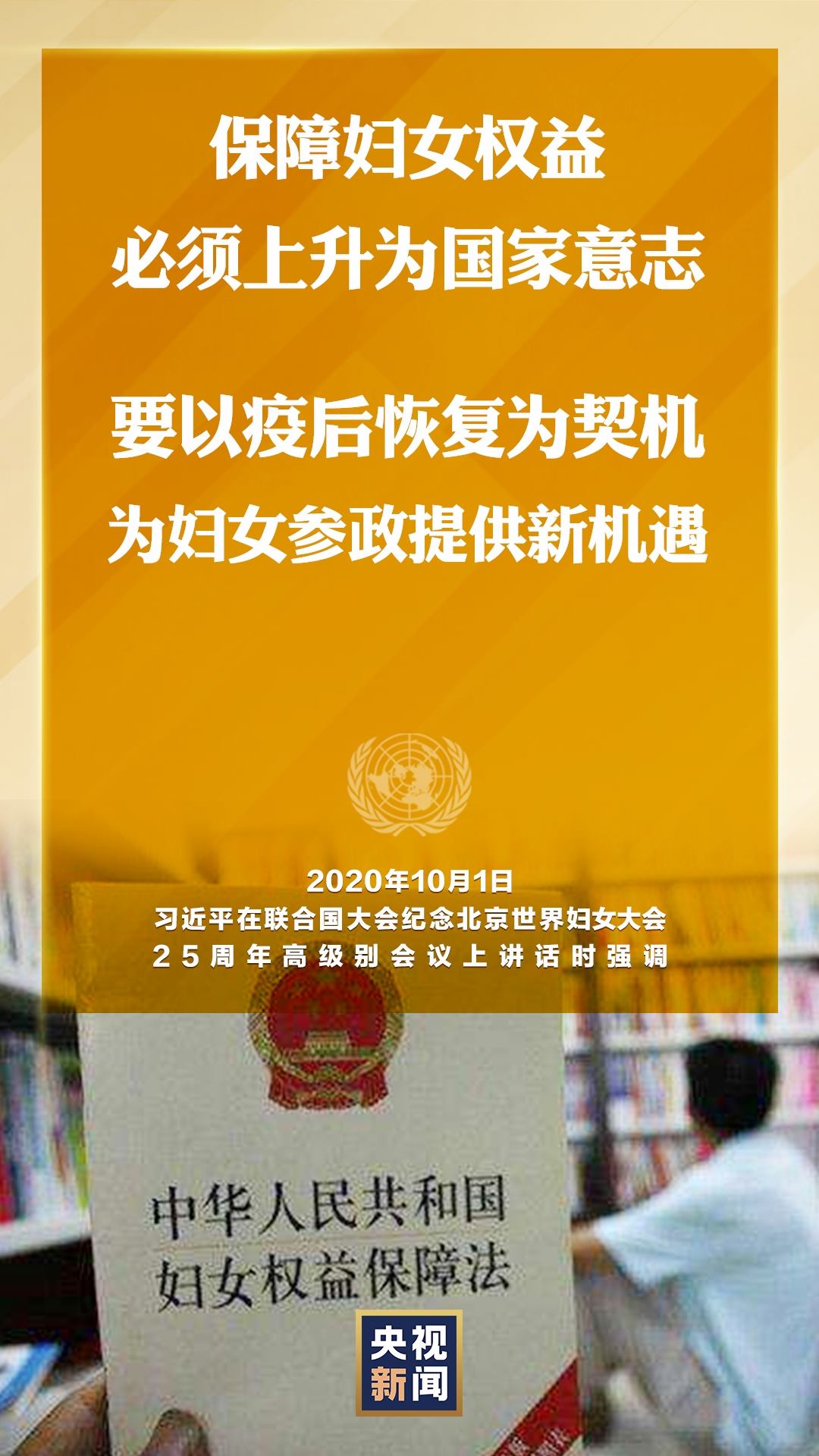 國家主席習(xí)近平10月1日在聯(lián)合國大會紀(jì)念北京世界婦女大會25周年高級別會議上通過視頻發(fā)表重要講話。就如何切實(shí)保護(hù)婦女權(quán)益,習(xí)近平提出中國主張。