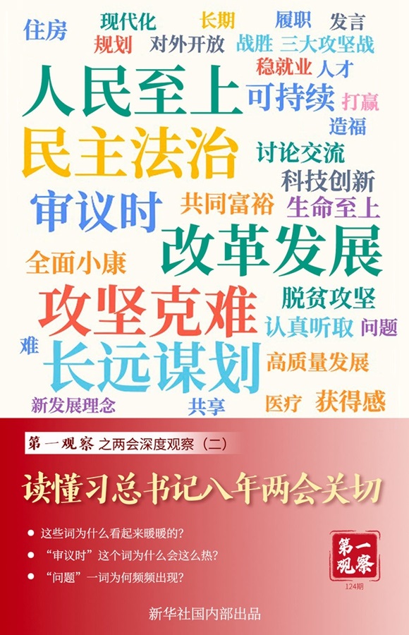 “去年有多少人娶媳婦兒”“農(nóng)家樂辦起來了嗎”……與長期扎根一線的代表委員面對面,總書記熱切詢問百姓冷暖;“養(yǎng)老”“穩(wěn)就業(yè)”“醫(yī)療”“住房”“社會(huì)救助”……著力解決人民群眾最關(guān)心最直接最現(xiàn)實(shí)的問題,總書記把它放在最突出位置。
