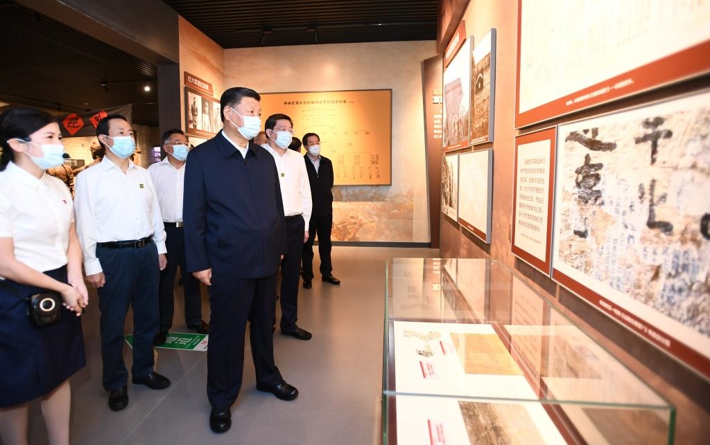 2020年9月16日,習(xí)近平在郴州市汝城縣文明瑤族鄉(xiāng)沙洲瑤族村“半條被子的溫暖”專題陳列館,了解當(dāng)?shù)亻_展紅色教育情況。(新華社記者謝環(huán)馳攝)