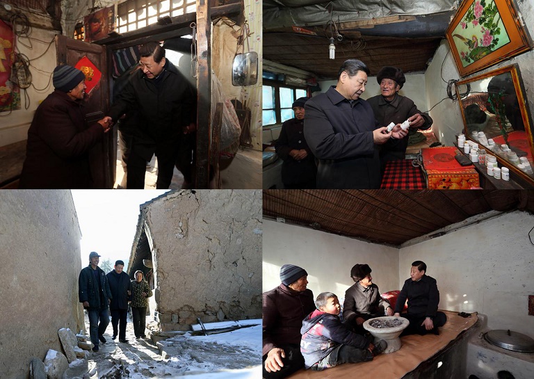 △2012年12月29日至30日,習(xí)近平到河北阜平駱駝灣村看望慰問困難群眾。