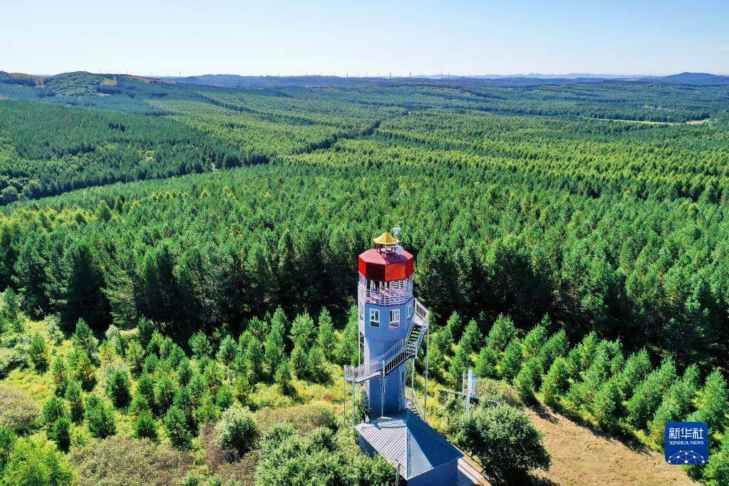 河北塞罕壩機(jī)械林場內(nèi)的望海樓(8月23日攝,無人機(jī)照片)。新華社記者牟宇攝