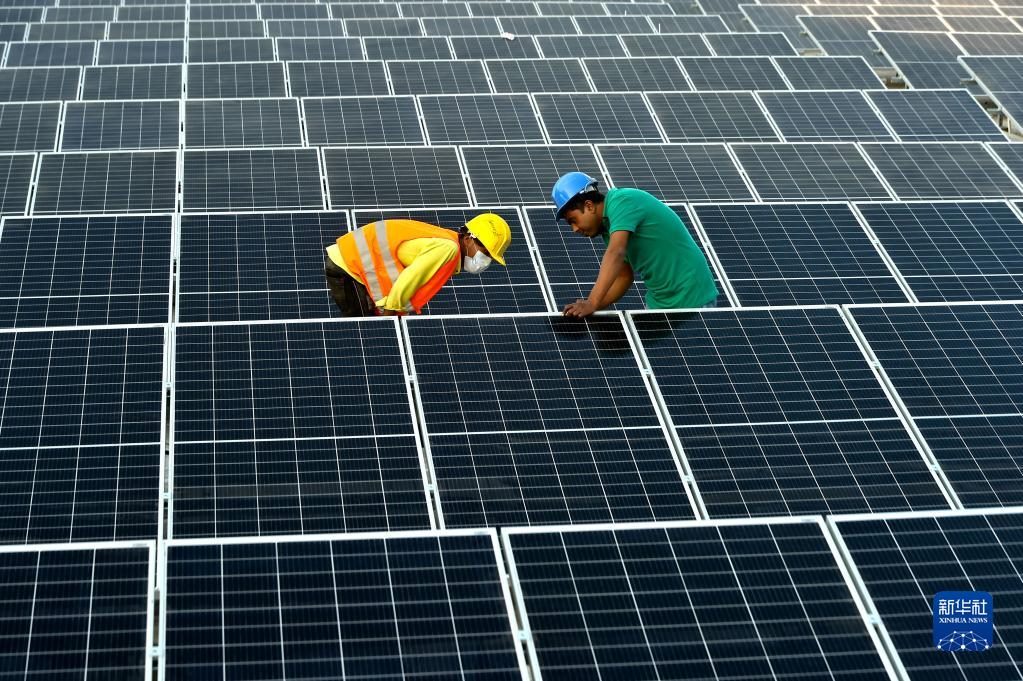 2021年1月3日,在位于孟加拉國首都達(dá)卡郊區(qū)的利德成集團(tuán)廠區(qū),工人們在房頂組裝光伏模組。從2020年開始,中資制衣類企業(yè)——利德成集團(tuán)在其位于孟加拉國達(dá)卡的廠區(qū)內(nèi)建設(shè)光伏電站,以降低對傳統(tǒng)能源的依賴,減少碳排放,從綠色發(fā)展的角度助力“一帶一路”建設(shè)。新華社發(fā)