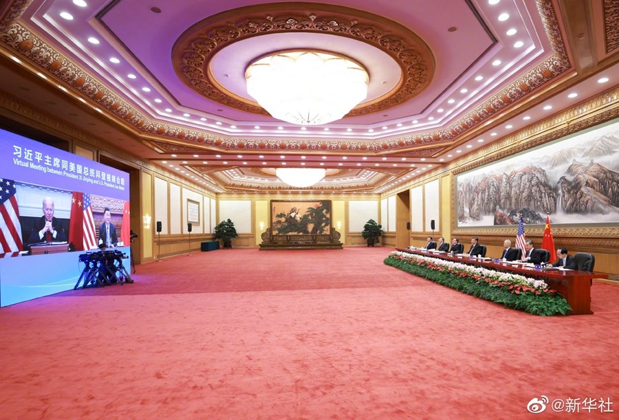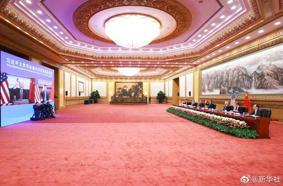 習近平強調(diào),推動中美各自發(fā)展,維護和平穩(wěn)定的國際環(huán)境,包括有效應(yīng)對氣候變化、新冠肺炎疫情在內(nèi)的全球性挑戰(zhàn),都需要一個健康穩(wěn)定的中美關(guān)系。中美應(yīng)該相互尊重、和平共處、合作共贏。我愿同總統(tǒng)先生一道,形成共識,積極行動,引領(lǐng)中美關(guān)系積極向前發(fā)展。這是造福兩國人民的需要,也是國際社會的期待。