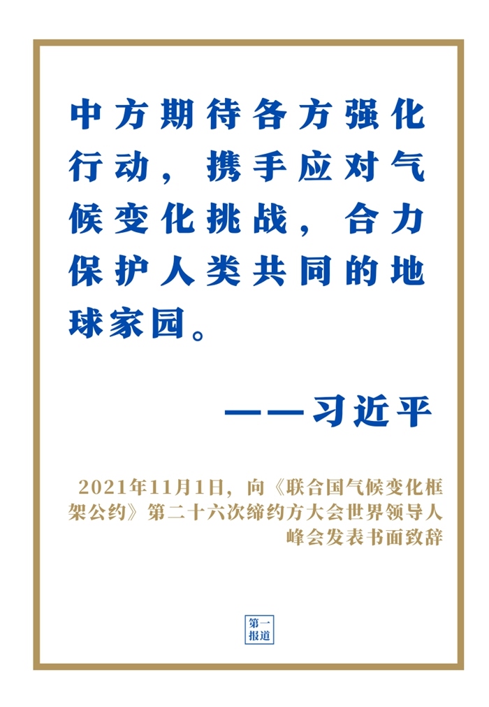 ——“應(yīng)對氣候變化等全球性挑戰(zhàn),多邊主義是良方?!?/strong>在《聯(lián)合國氣候變化框架公約》第二十六次締約方大會(huì)世界領(lǐng)導(dǎo)人峰會(huì)上,習(xí)近平主席強(qiáng)調(diào)“維護(hù)多邊共識”。