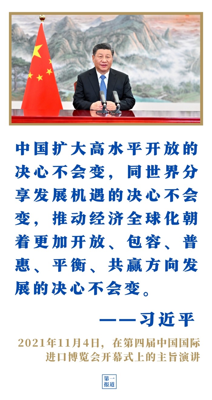第四屆進(jìn)博會(huì)上,習(xí)近平主席表示,中國愿同各國共建開放型世界經(jīng)濟(jì),讓開放的春風(fēng)溫暖世界;第三次“一帶一路”建設(shè)座談會(huì)上,習(xí)近平主席強(qiáng)調(diào)以高標(biāo)準(zhǔn)、可持續(xù)、惠民生為目標(biāo),繼續(xù)推動(dòng)共建“一帶一路”高質(zhì)量發(fā)展。