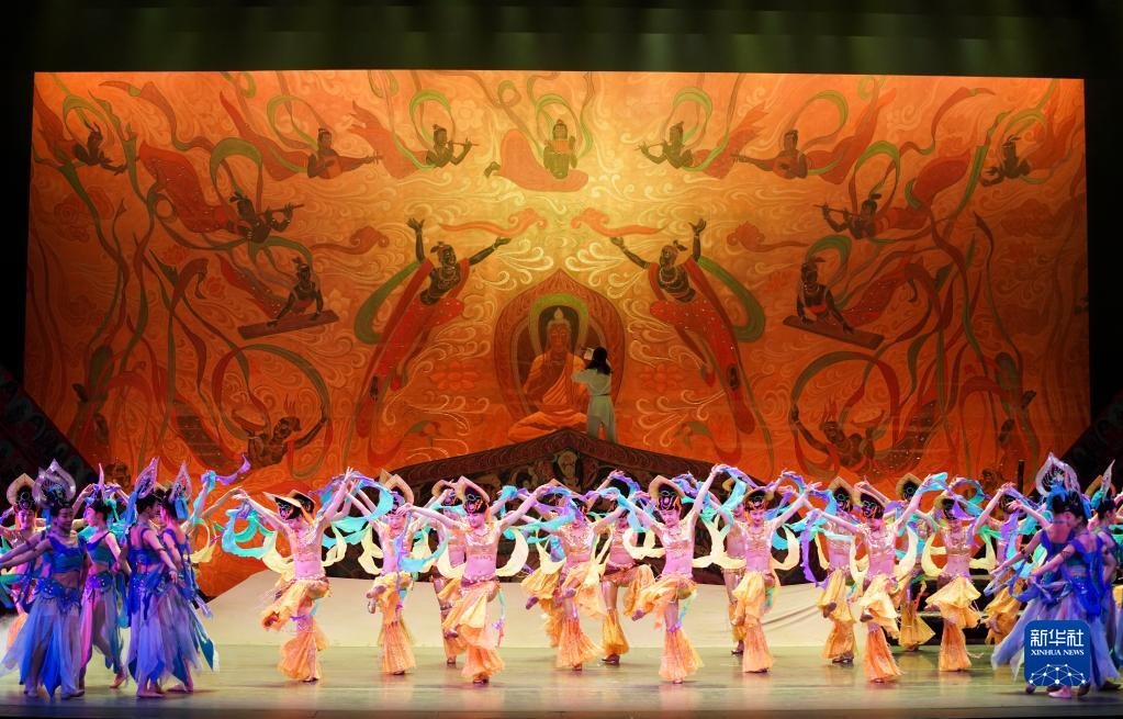 2020年1月9日,在美國紐約林肯劇院,演員在媒體預(yù)演上表演《大夢(mèng)敦煌》片段。新華社記者 王迎/攝