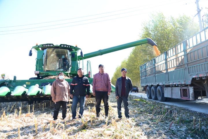 圖為吉林省松原市大洼鎮(zhèn)民樂村春峰種植專業(yè)合作社秋收場景。(新華社記者徐子恒攝)
