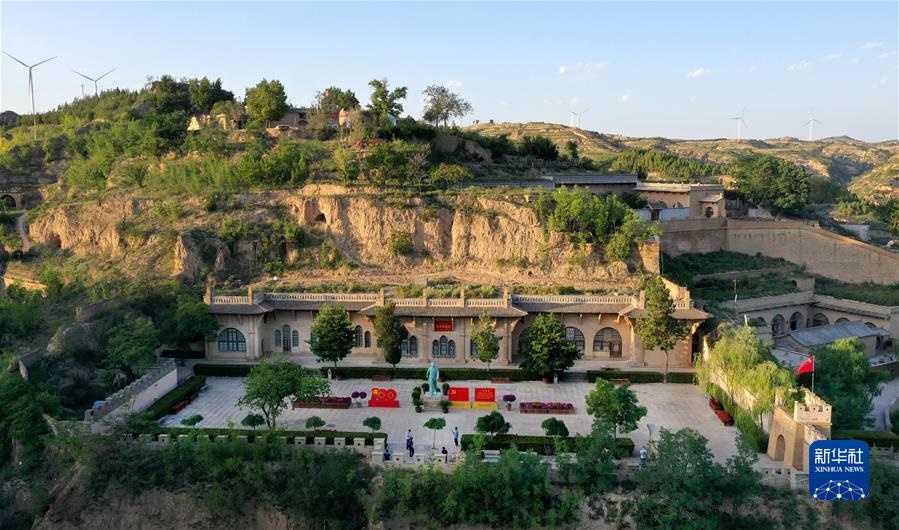 游人在陜西省榆林市米脂縣楊家溝革命舊址參觀(9月10日攝,無人機照片)。新華社記者陶明攝