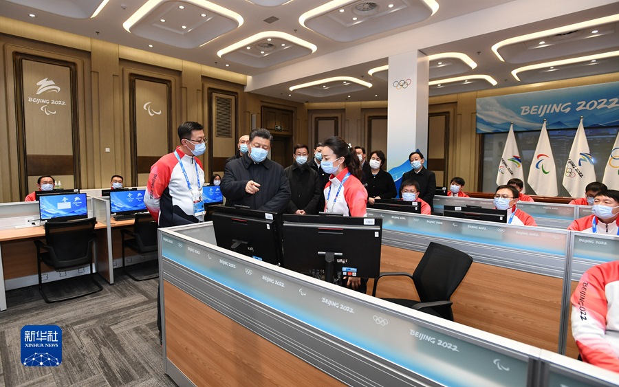 1月4日,中共中央總書記、國家主席、中央軍委主席習(xí)近平在北京考察2022年冬奧會、冬殘奧會籌辦備賽工作。這是4日下午,習(xí)近平在北京冬奧運行指揮部調(diào)度中心考察。新華社記者 謝環(huán)馳 攝