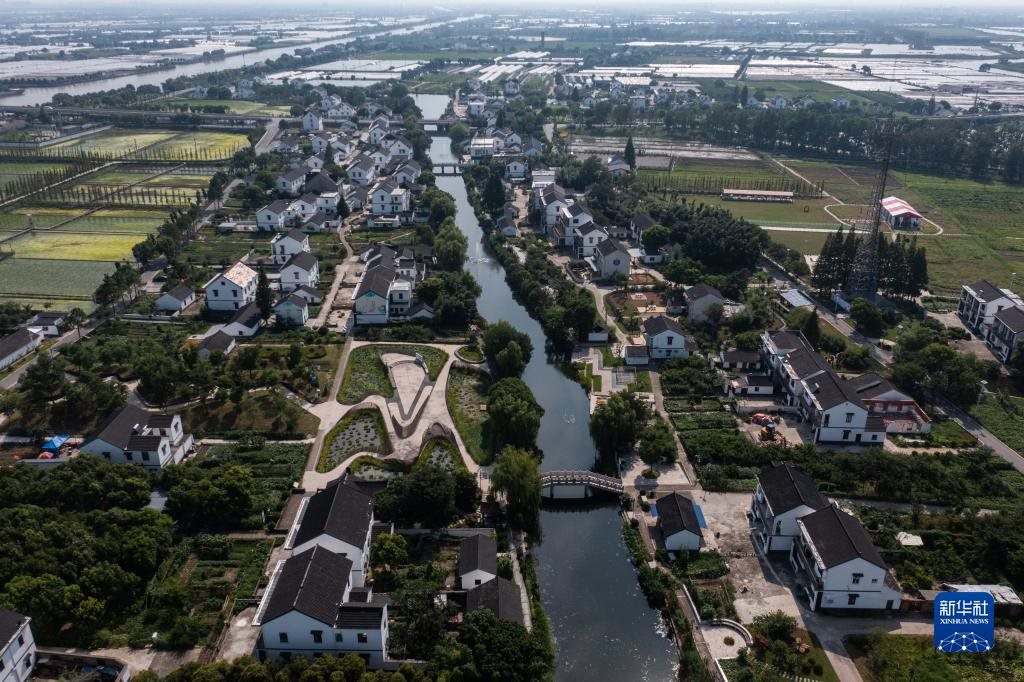 空中俯瞰浙江省嘉興市嘉善縣姚莊鎮(zhèn)橫港村(2021年7月12日攝,無(wú)人機(jī)照片)。近年來(lái),嘉善縣建設(shè)高標(biāo)準(zhǔn)農(nóng)田14.8萬(wàn)畝;同時(shí)建設(shè)產(chǎn)業(yè)幫扶聯(lián)合體、農(nóng)業(yè)社會(huì)化服務(wù)綜合體等,不斷拓寬農(nóng)民增收致富渠道,走出了一條城鄉(xiāng)深度融合推動(dòng)共同富裕的實(shí)踐路子。新華社記者徐昱攝