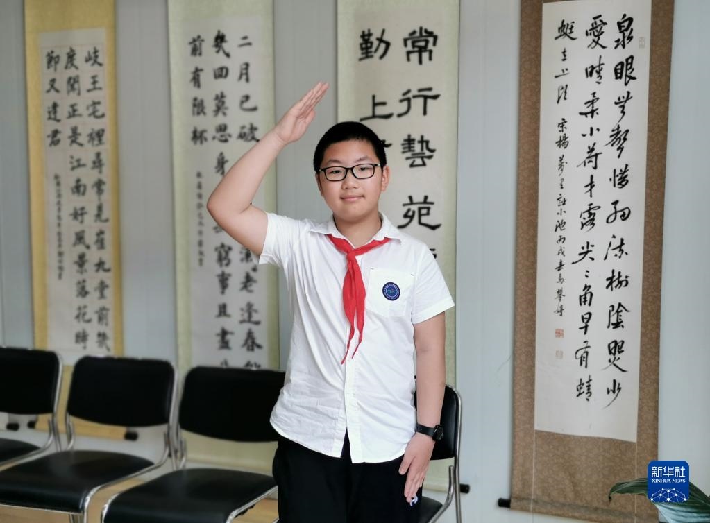 總書記說:“記得入隊(duì)時(shí)心怦怦跳,很激動(dòng)。不知你們有沒有這種感覺?”孩子們回答:“有?!?/p>