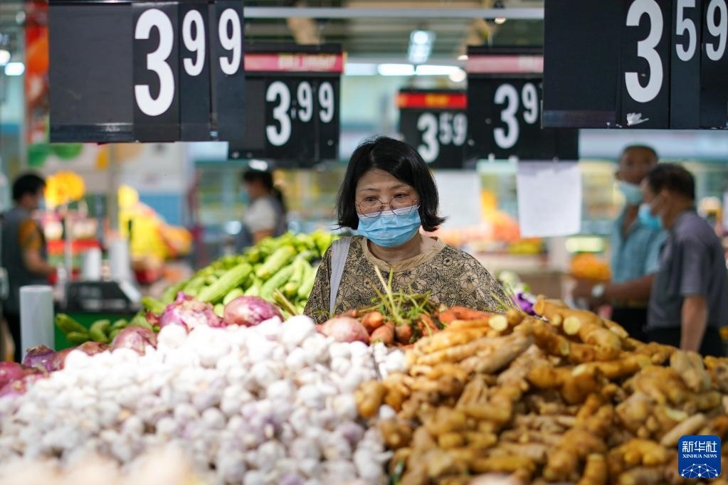 市民在江蘇省無錫市經(jīng)開區(qū)華潤萬家超市購物(2022年7月7日攝)。江蘇省無錫市在做好疫情防控的同時,積極制定相關方案,制作城市保供地圖,組織大型商超、市場正常運營,全力保供穩(wěn)價,端穩(wěn)市民“菜籃子”。新華社記者李博攝