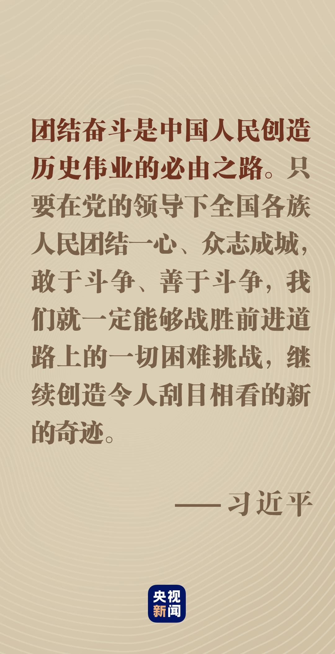 無論風(fēng)云如何變幻,無論挑戰(zhàn)如何嚴(yán)峻,只要我們精誠(chéng)團(tuán)結(jié)、共同奮斗,就沒有任何力量能夠阻擋中國(guó)人民前進(jìn)的步伐。