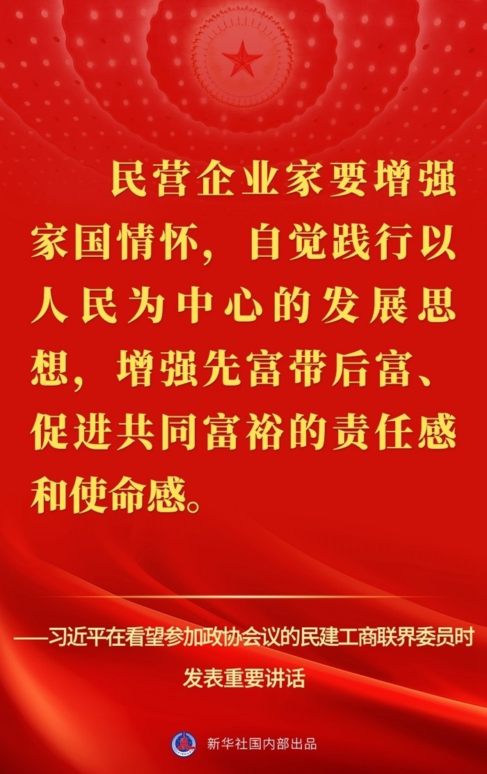 “黨中央始終堅(jiān)持‘兩個(gè)毫不動(dòng)搖’、‘三個(gè)沒有變’,始終把民營(yíng)企業(yè)和民營(yíng)企業(yè)家當(dāng)作自己人?!?月6日,習(xí)近平總書記在看望參加全國(guó)政協(xié)十四屆一次會(huì)議的民建、工商聯(lián)界委員并參加聯(lián)組會(huì)時(shí)發(fā)表重要講話,強(qiáng)調(diào)要引導(dǎo)民營(yíng)企業(yè)和民營(yíng)企業(yè)家正確理解黨中央方針政策,增強(qiáng)信心、輕裝上陣、大膽發(fā)展。