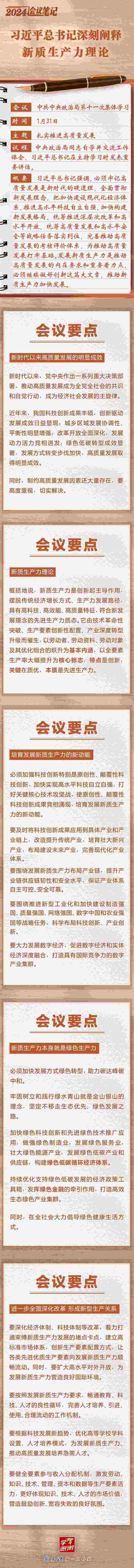 習近平強調,這次主題教育要牢牢把握“學思想、強黨性、重實踐、建新功”的總要求。要全面學習領會新時代中國特色社會主義思想,全面系統(tǒng)掌握這一思想的基本觀點、科學體系,把握好這一思想的世界觀、方法論,堅持好、運用好貫穿其中的立場觀點方法,不斷增進對黨的創(chuàng)新理論的政治認同、思想認同、理論認同、情感認同,真正把馬克思主義看家本領學到手,自覺用新時代中國特色社會主義思想指導各項工作。要自覺用新時代中國特色社會主義思想改造主觀世界,深刻領會這一思想關于堅定理想信念、提升思想境界、加強黨性鍛煉等一系列要求,始終保持共產(chǎn)黨人的政治本色。要自覺踐行新時代中國特色社會主義思想,用以改造客觀世界、推動事業(yè)發(fā)展,用以觀察時代、把握時代、引領時代,積極識變應變求變,解決經(jīng)濟社會發(fā)展和黨的建設中存在的各種矛盾問題,防范化解重大風險,推動中國式現(xiàn)代化取得新進展新突破。要從新時代中國特色社會主義思想中汲取奮發(fā)進取的智慧和力量,熟練掌握其中蘊含的領導方法、思想方法、工作方法,不斷提高履職盡責的能力和水平,凝心聚力促發(fā)展,馳而不息抓落實,立足崗位作貢獻,努力創(chuàng)造經(jīng)得起歷史和人民檢驗的實績。