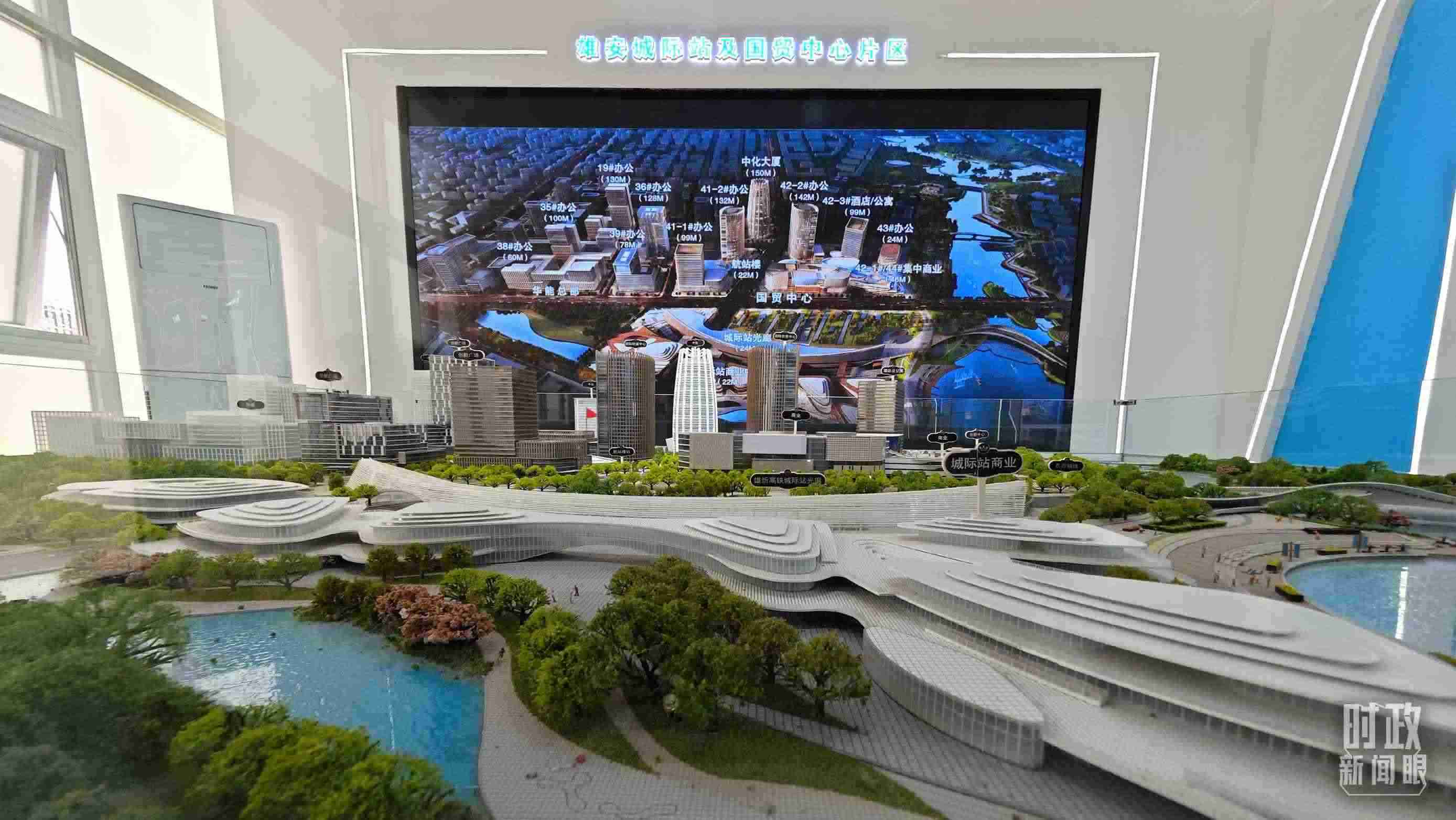 △雄安城際站及國貿(mào)中心項目模型。(總臺央視記者彭漢明拍攝)