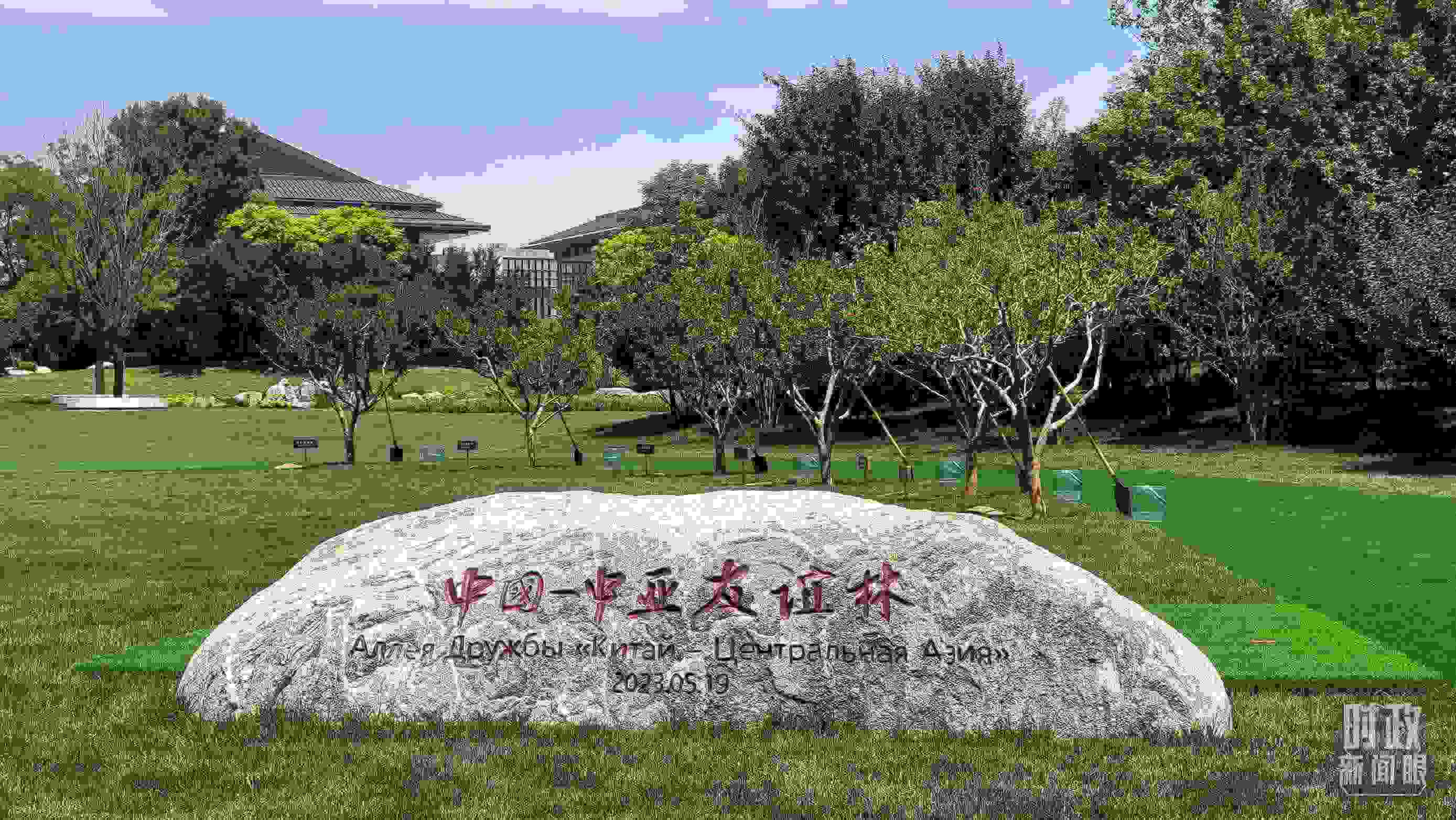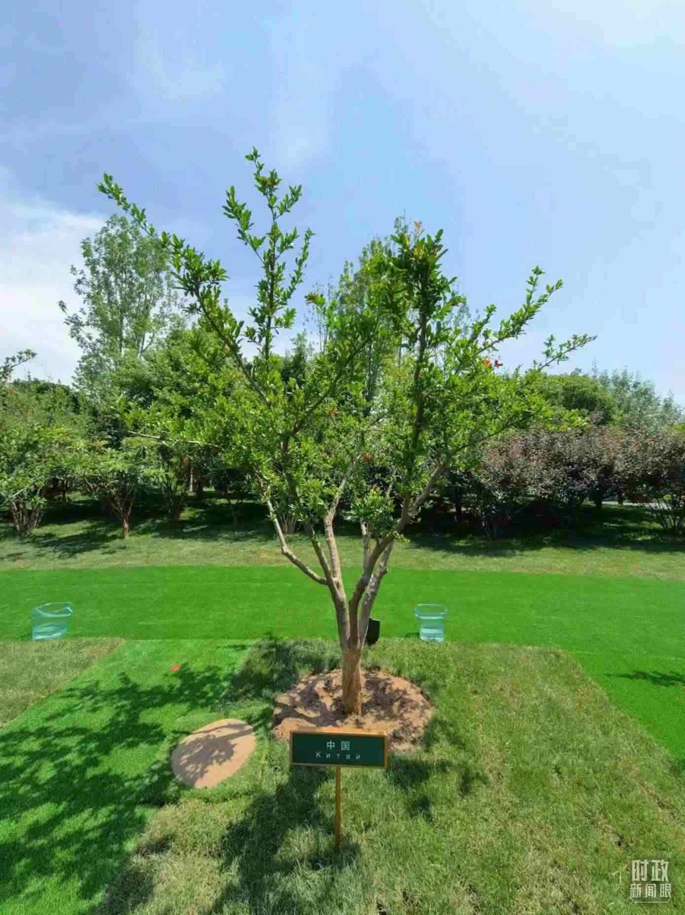 △ 中國-中亞友誼林內(nèi)的六棵石榴樹。(總臺央視記者鐘信偉拍攝)