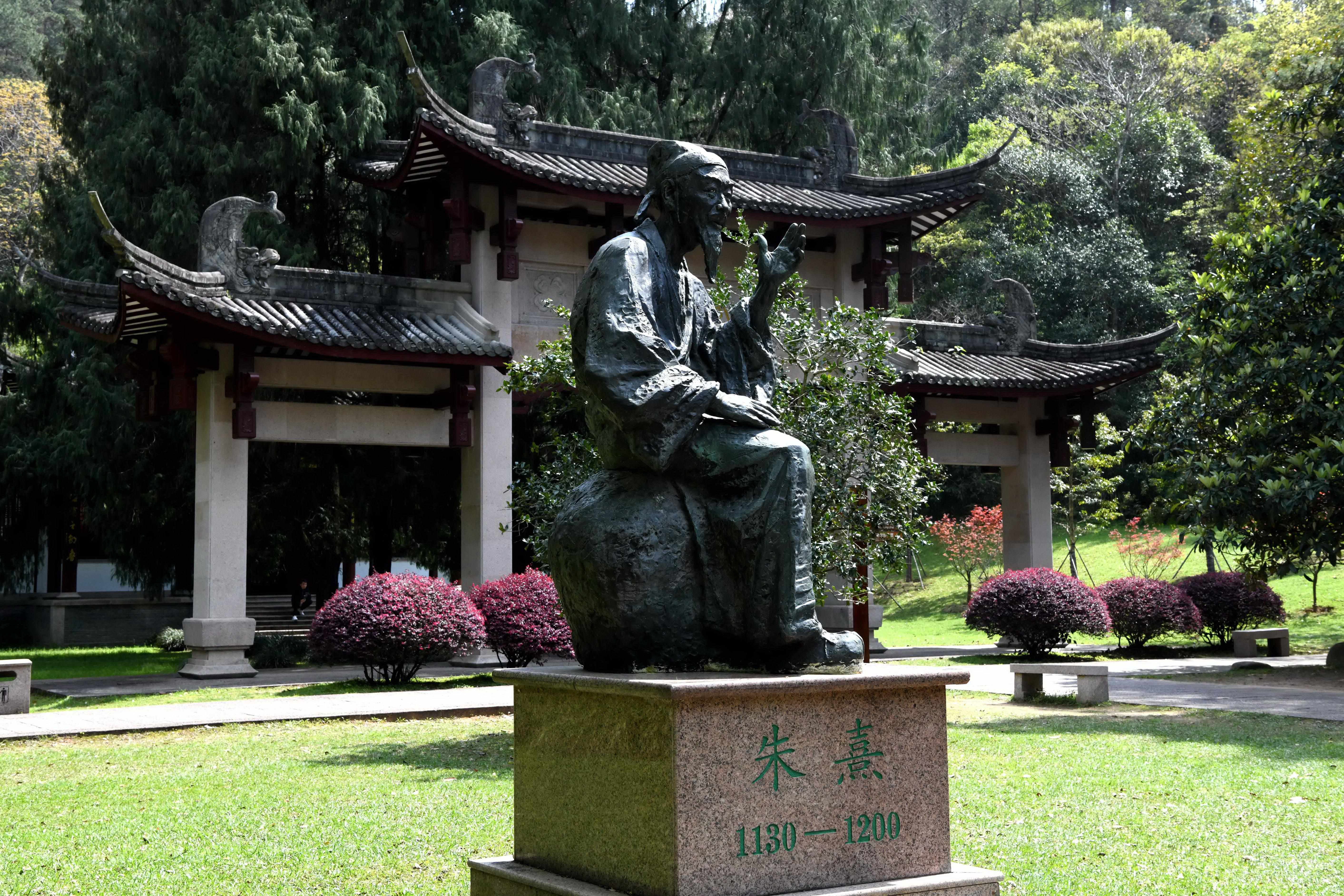 △福建武夷山朱熹園門口的朱熹雕塑。朱熹園是武夷山世界文化遺產(chǎn)的核心部分,也被譽(yù)為朱子理學(xué)的“搖籃”。