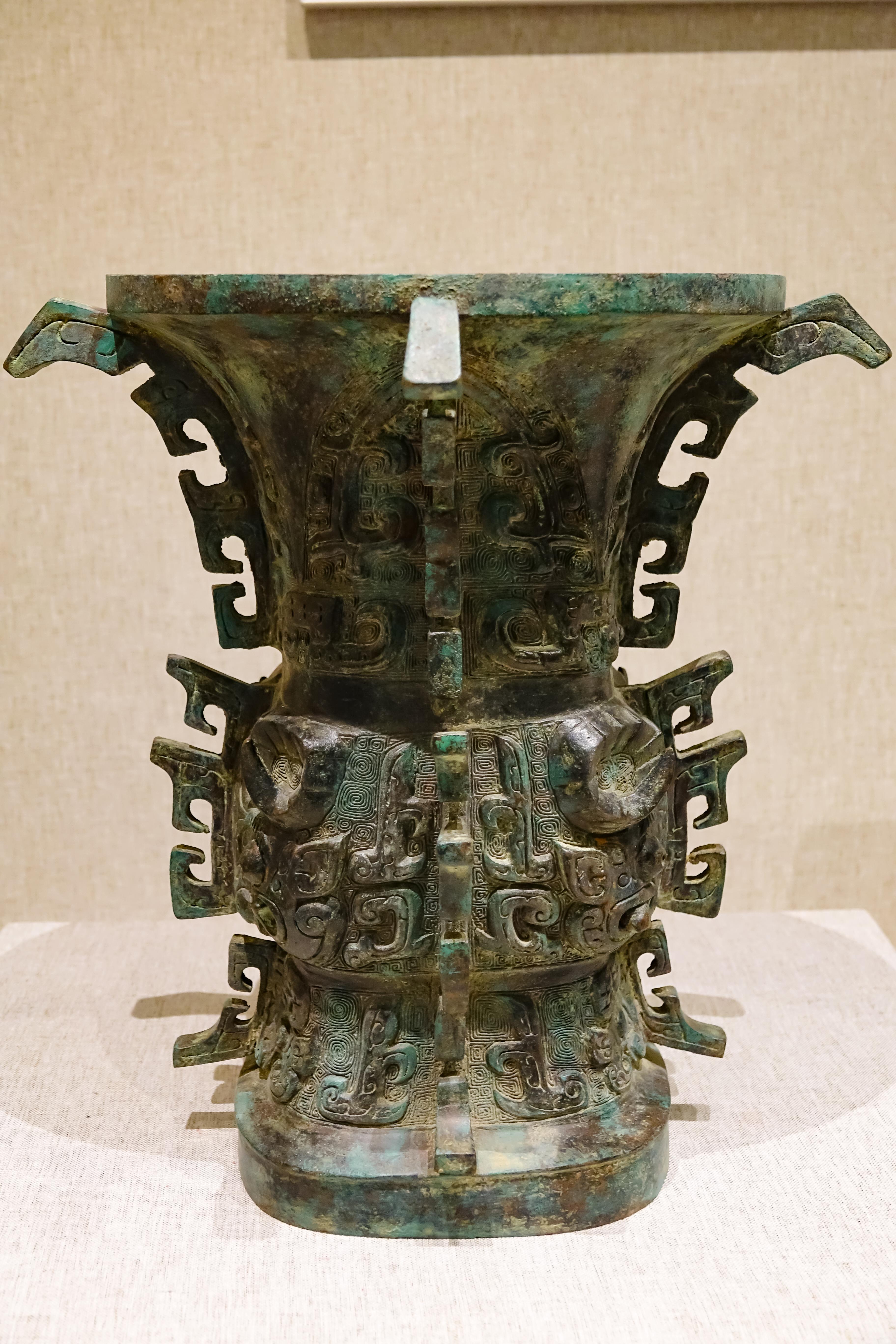 展廳內(nèi),一件造型渾厚、工藝精美的西周早期青銅器——“何尊”熠熠生輝。何尊1963年出土于陜西寶雞,內(nèi)底刻有銘文“宅茲中國(guó)”,是目前發(fā)現(xiàn)“中國(guó)”二字最早的實(shí)物記錄。2020年,習(xí)近平總書記在陜西考察時(shí)說(shuō),“中國(guó)”二字最早見于在陜西出土的青銅器何尊。