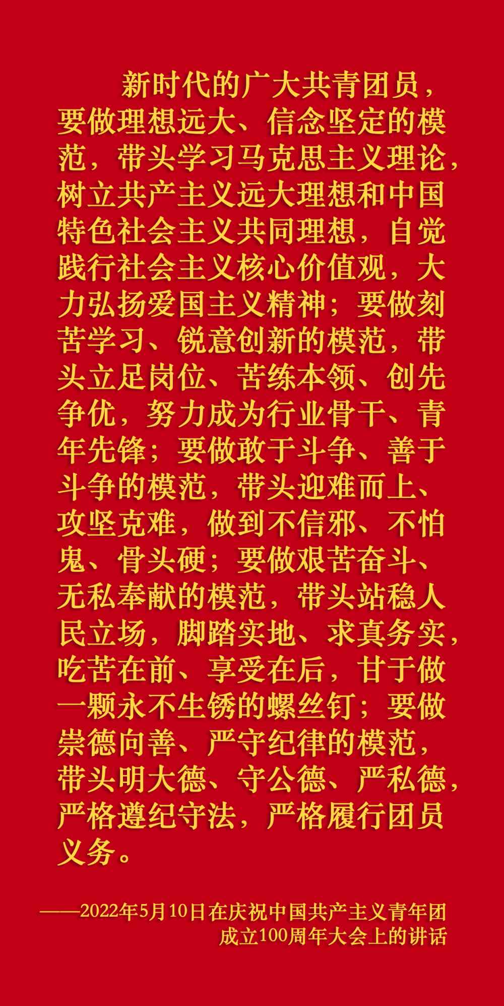 2022年5月10日,慶祝中國(guó)共產(chǎn)主義青年團(tuán)成立100周年大會(huì)在北京人民大會(huì)堂隆重舉行。習(xí)近平在大會(huì)上發(fā)表重要講話(huà)。