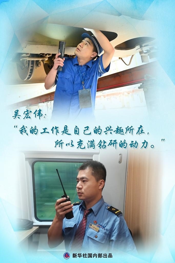 畢業(yè)于天津電子信息職業(yè)技術學院的吳宏偉,現(xiàn)在是一位高鐵的“安全擔當”——隨車機械師。