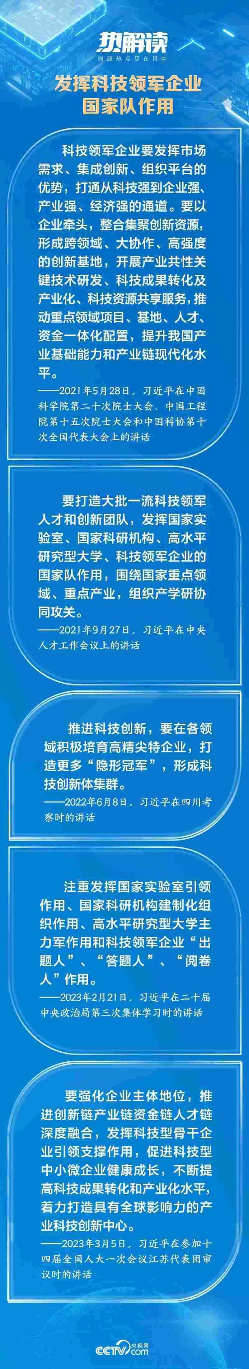 企業(yè)是市場的主體,是推動(dòng)科技創(chuàng)新的生力軍。作為國家戰(zhàn)略科技力量的重要組成部分,總書記對(duì)科技領(lǐng)軍企業(yè)更是寄予厚望:“要自覺履行高水平科技自立自強(qiáng)的使命擔(dān)當(dāng)”,要注重發(fā)揮“科技領(lǐng)軍企業(yè)‘出題人’、‘答題人’、‘閱卷人’作用”。