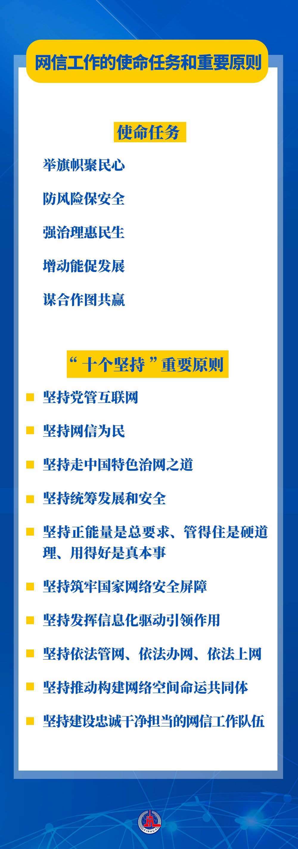 習(xí)近平總書(shū)記鮮明提出的網(wǎng)信工作“5個(gè)方面、30個(gè)字”的使命任務(wù),涵蓋互聯(lián)網(wǎng)內(nèi)容建設(shè)、網(wǎng)絡(luò)安全、網(wǎng)絡(luò)惠民、信息化建設(shè)、國(guó)際網(wǎng)絡(luò)空間治理等,“十個(gè)堅(jiān)持”重要原則進(jìn)一步豐富和發(fā)展了習(xí)近平總書(shū)記關(guān)于網(wǎng)絡(luò)強(qiáng)國(guó)的重要思想,把黨對(duì)網(wǎng)信工作的規(guī)律性認(rèn)識(shí)提升到全新高度??倳?shū)記提出的使命任務(wù)和重要原則,具有很強(qiáng)的政治性、戰(zhàn)略性、指導(dǎo)性,既著眼當(dāng)前,又謀深慮遠(yuǎn),為做好新時(shí)代新征程網(wǎng)信工作指明了前進(jìn)方向,為推進(jìn)實(shí)現(xiàn)網(wǎng)絡(luò)強(qiáng)國(guó)提供了根本遵循。