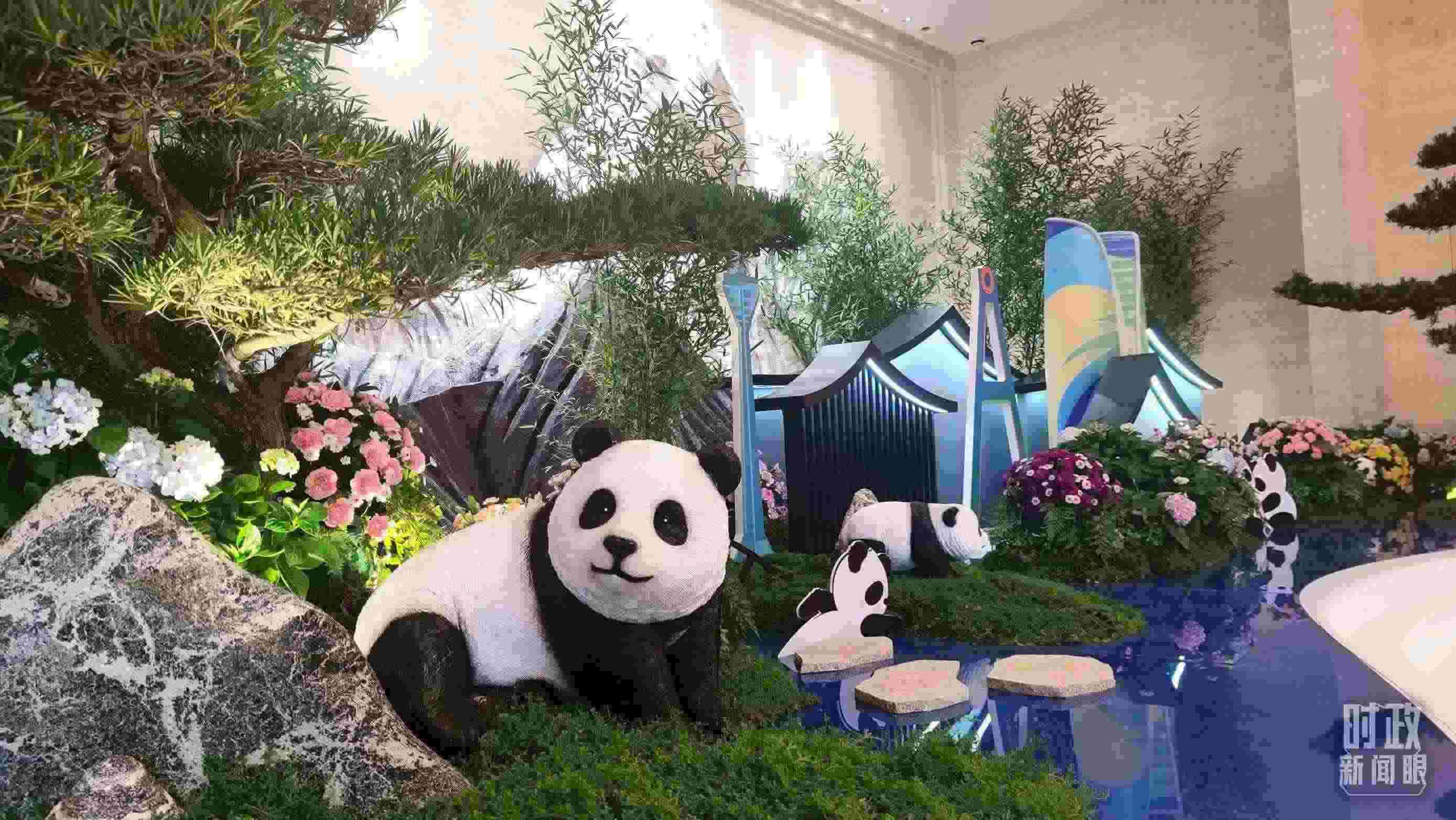 △為國(guó)際貴賓展示的四川非物質(zhì)文化遺產(chǎn)棕編和蜀繡。(總臺(tái)央視記者蔣碩、韓銳拍攝)